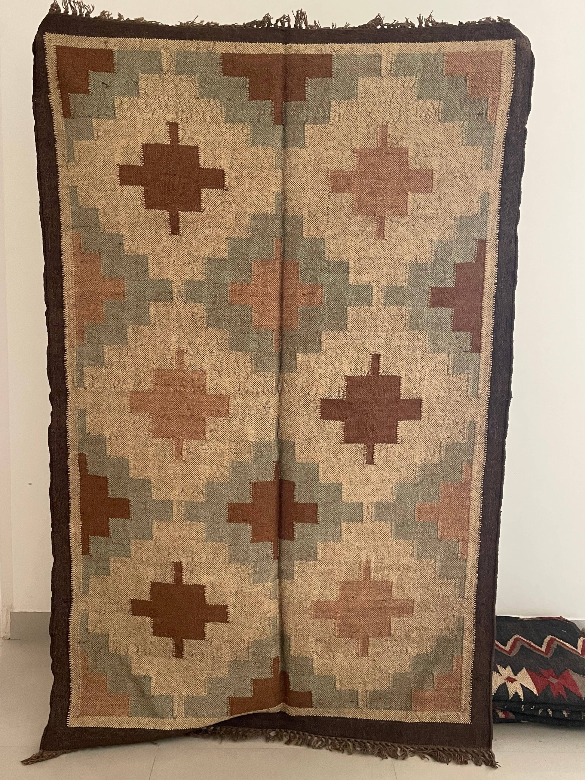 Famous for their rich colors, warm tones, and beautiful ethnic motifs, these flat-woven rugs embody a splendid mix of cultures: the Greeks, Armenians, Kurds, Assyrian, & Turkic peoples have all contributed to kilim history. The dhurrie is handwoven/loomed in jute and wool and the colors make you feel at home.