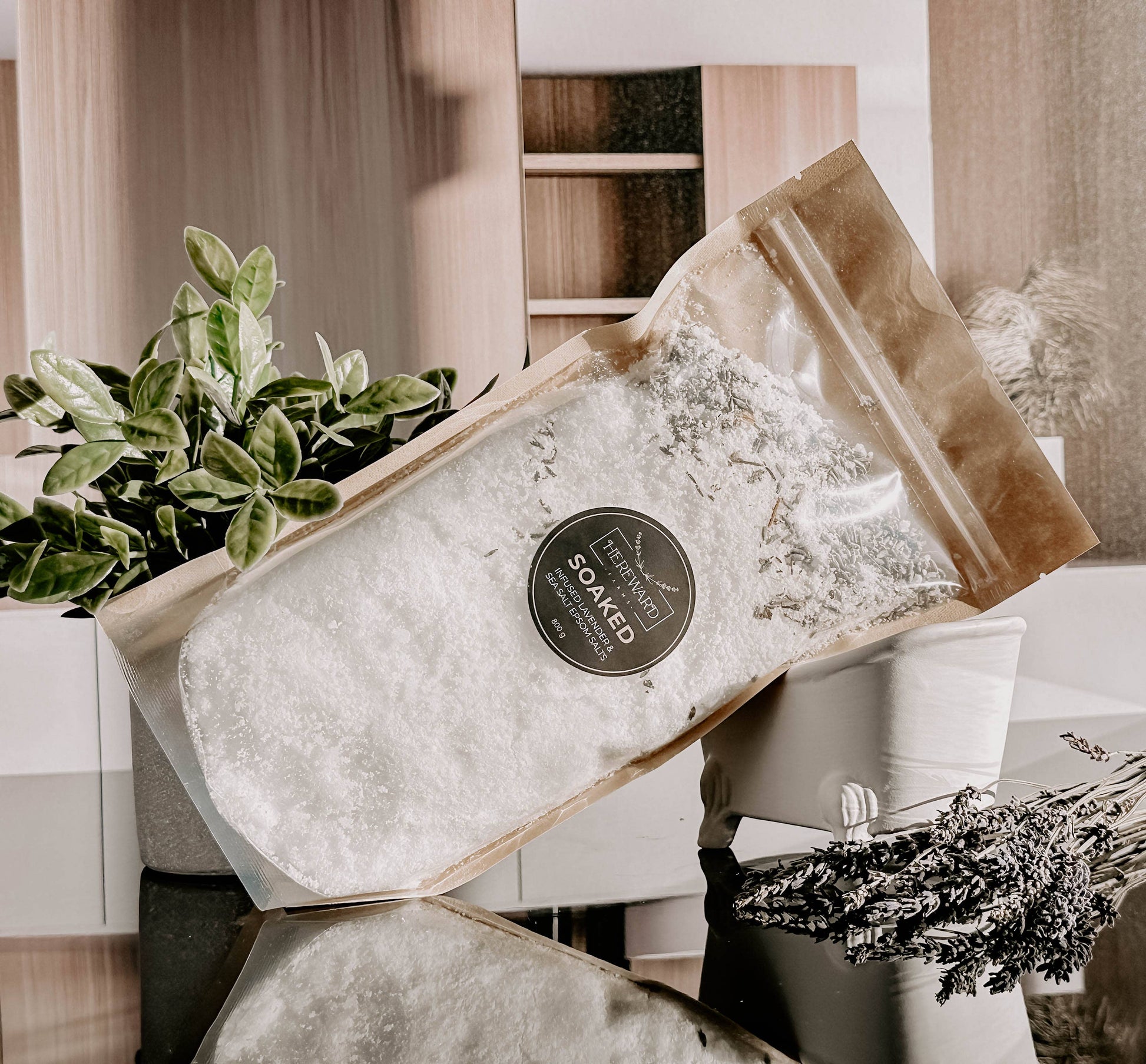 Soaked Lavender Infused Bath Salts are the perfect solution to help you detox and unwind after a long day. A perfect reason to have an at-home spa day! An aromatherapeutic blend of infused lavender oil, Epsom salt, and sea salt is the perfect way to calm all your senses.
