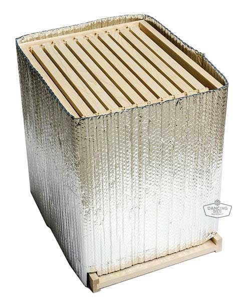 The reusable BeeDry winter wrap is a radiant foil insulation hive wrap. It helps keep the air at a constant temperature inside the hive by reflecting 97% of the radiant heat of bees back to the cluster, at the same time reflecting 97% of the outside temperatures away from the hive.