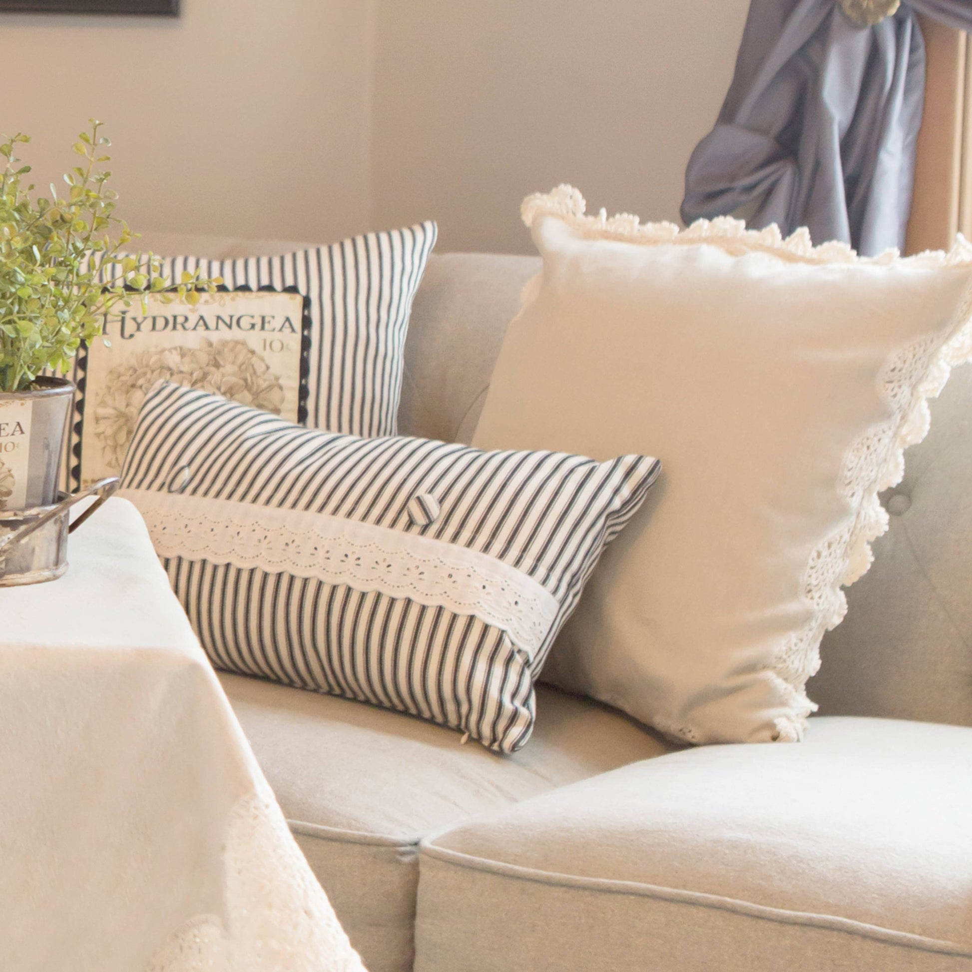 Care & Content Pillow Cover: 100% Cotton. Machine wash cold, gentle. Do not bleach. Lay flat or hang to dry. Touch up with cool iron if desired.