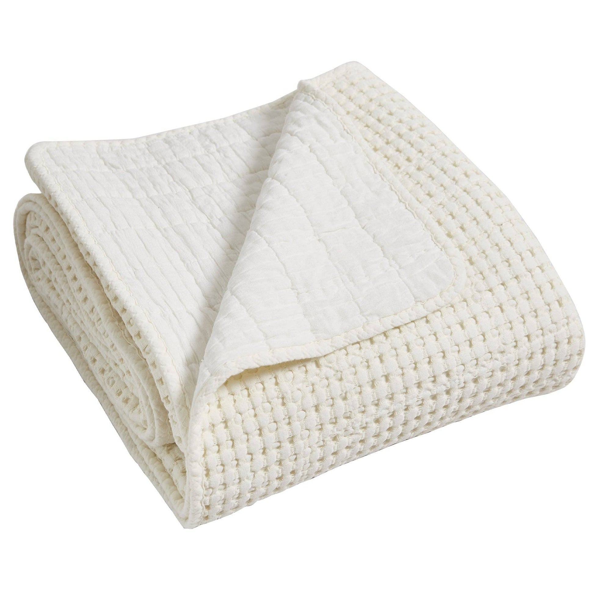 This throw is the perfect layering piece. Made with the softest lightweight cotton waffle, with polyester fill. Reverses to a coordinating brushed microfiber. Machine washable. 50 x 60". Enjoy this for years to come!