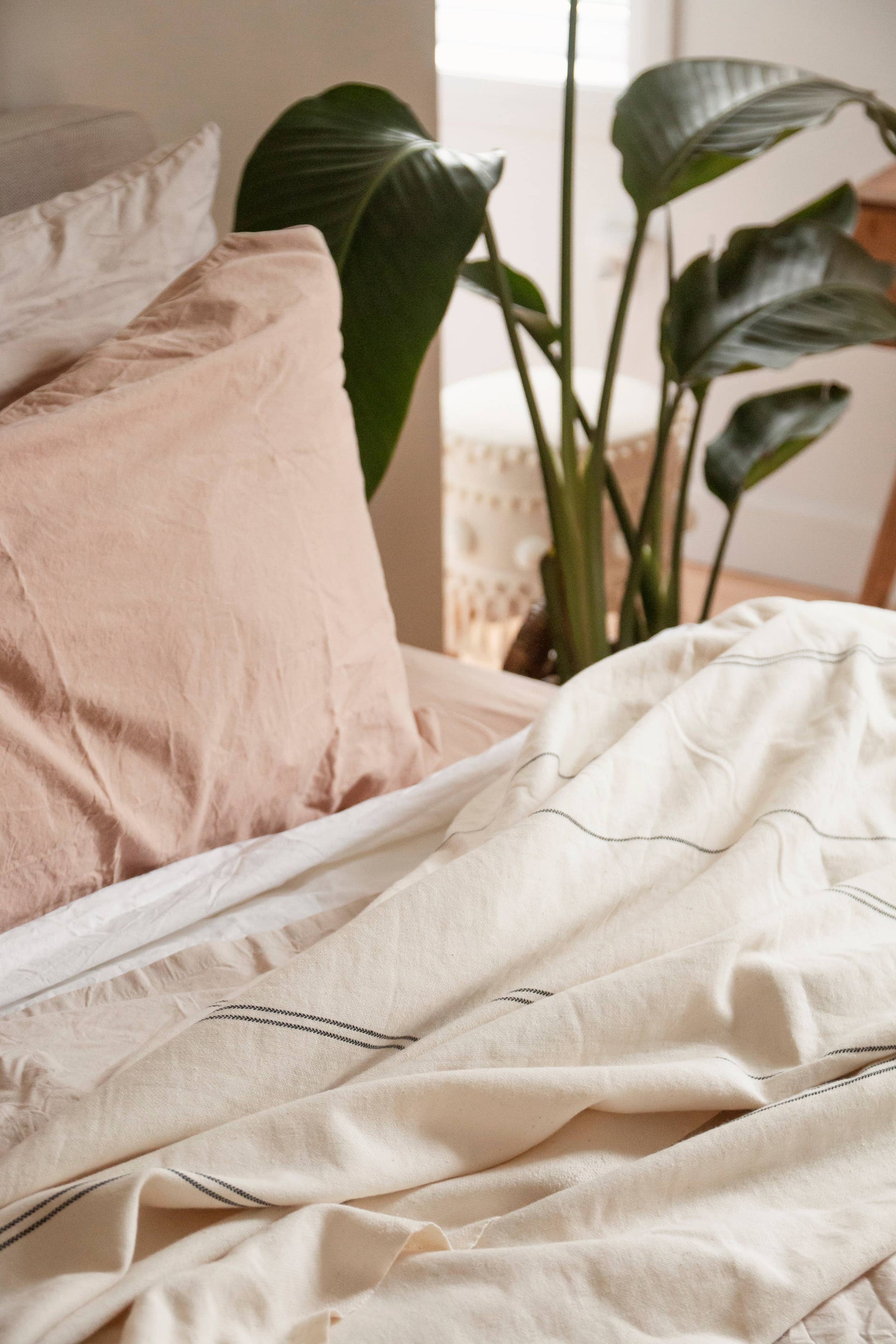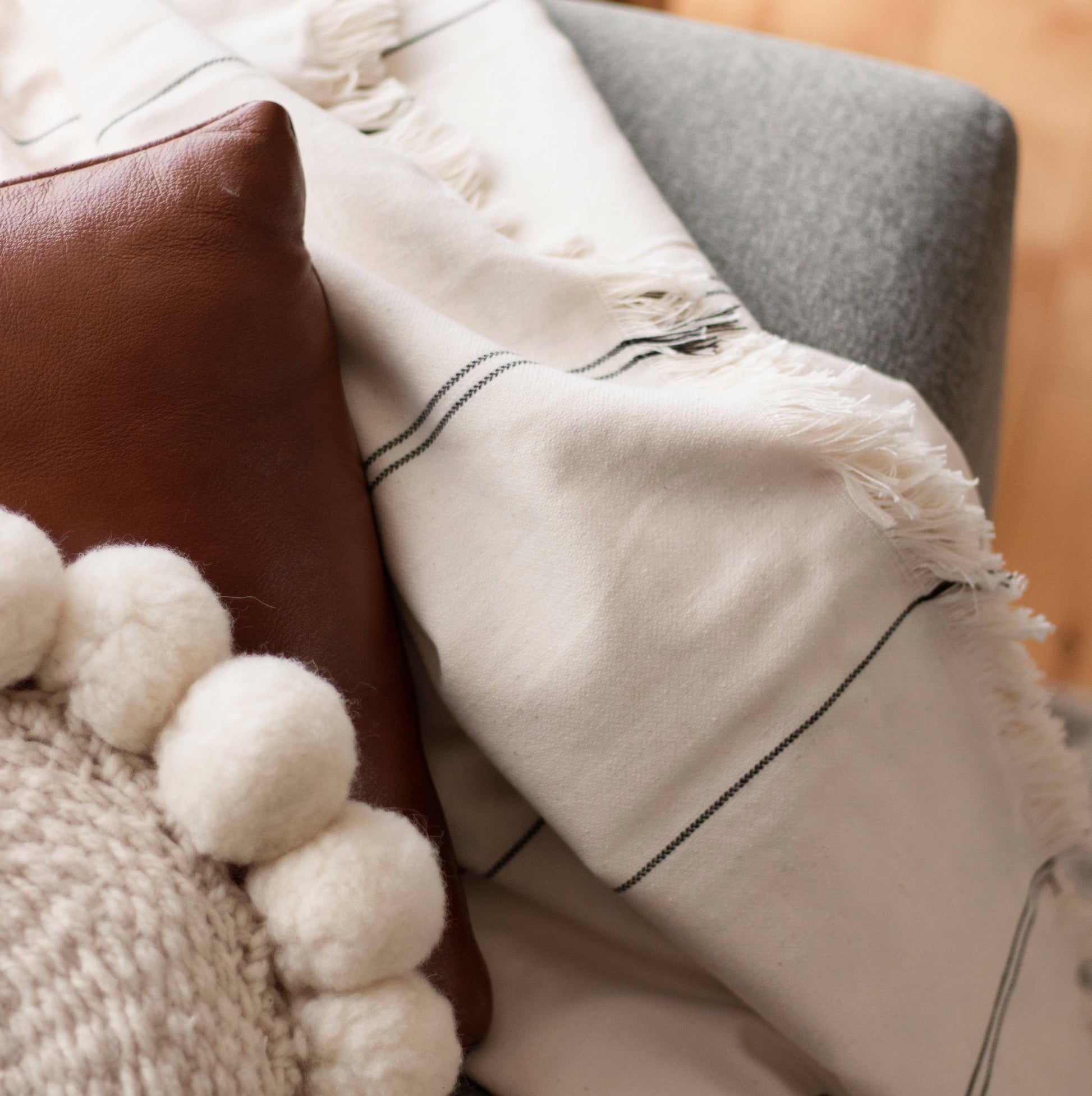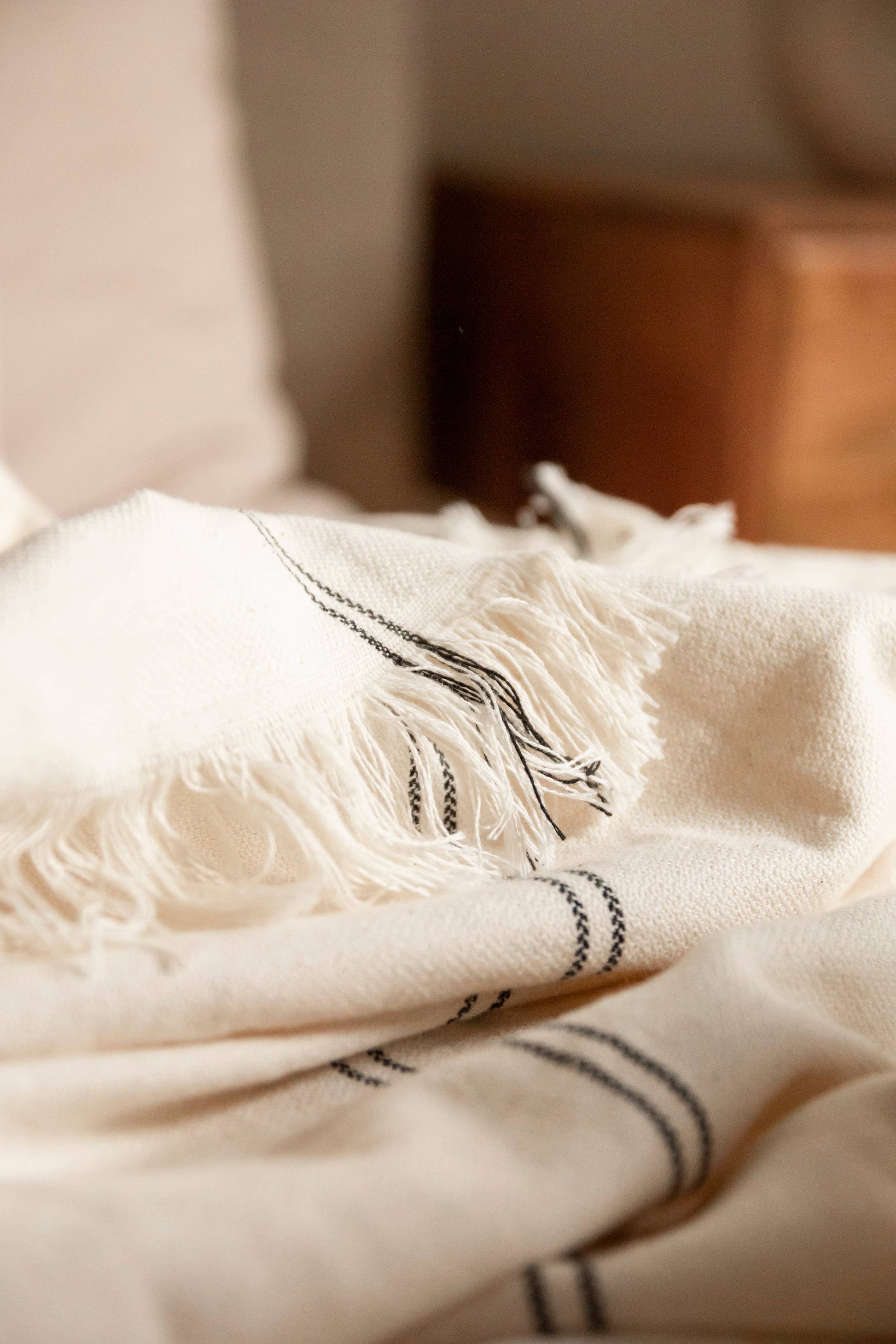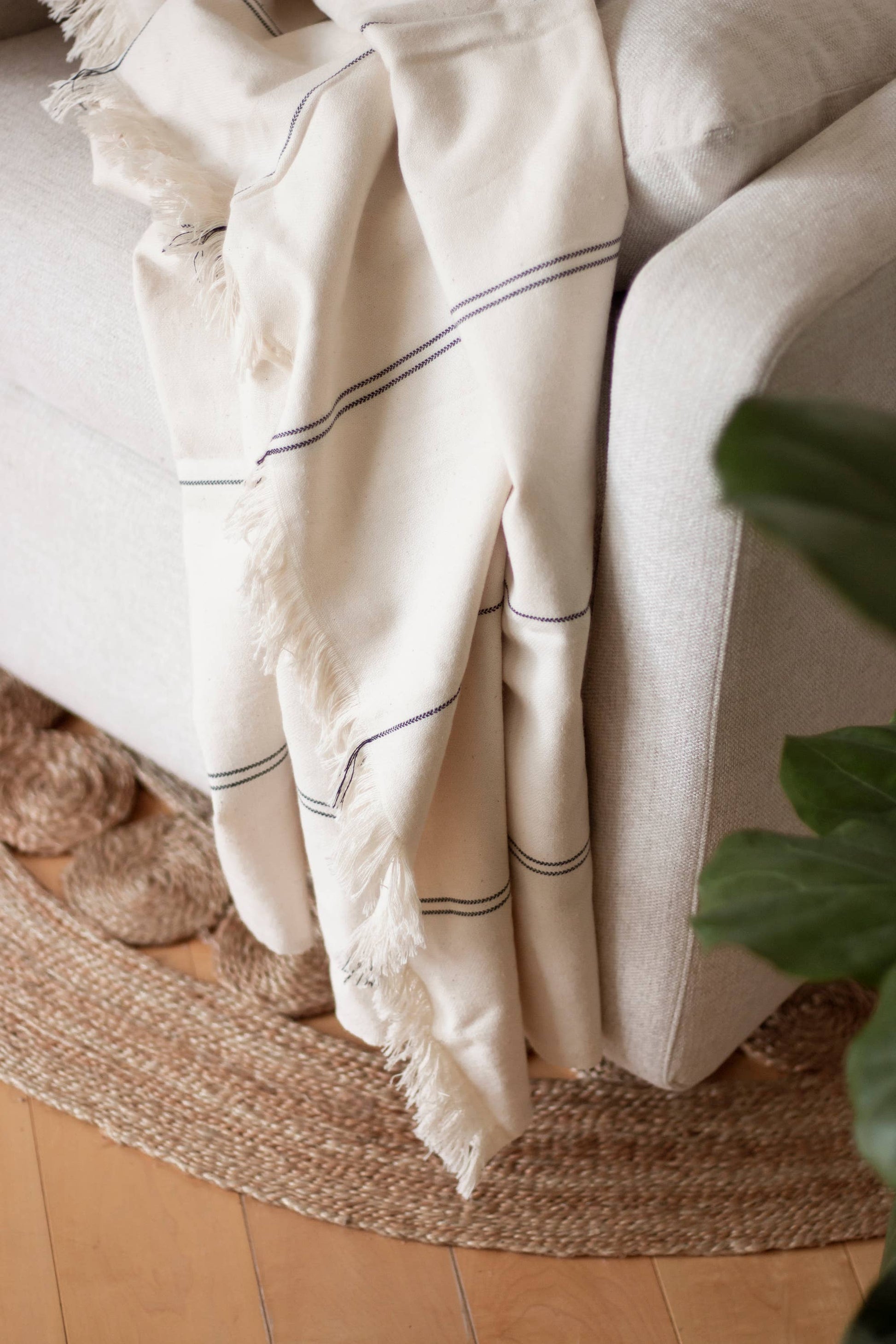 This lightweight, natural beauty adds layers and interest to every space. Its classic aesthetic will appeal to each of your customers, regardless of their personal style. This striped, natural cotton blanket is so much larger than any others on the market; it can be used as a coverlet on a king-sized bed, but is still compact enough to drape over a couch or chair. Made from warm yet breathable 100% Turkish cotton, which makes it perfect for all seasons.
