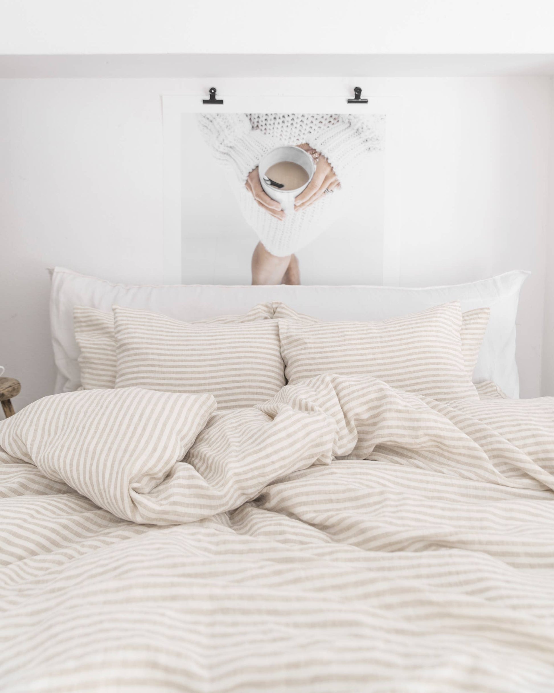 Linen duvet cover in striped in natural. Add playfulness to your bedroom and improve your sleep with our linen duvet covers that are soft, highly breathable, and hypoallergenic. The natural properties of linen guarantee the feeling of comfort all year round.