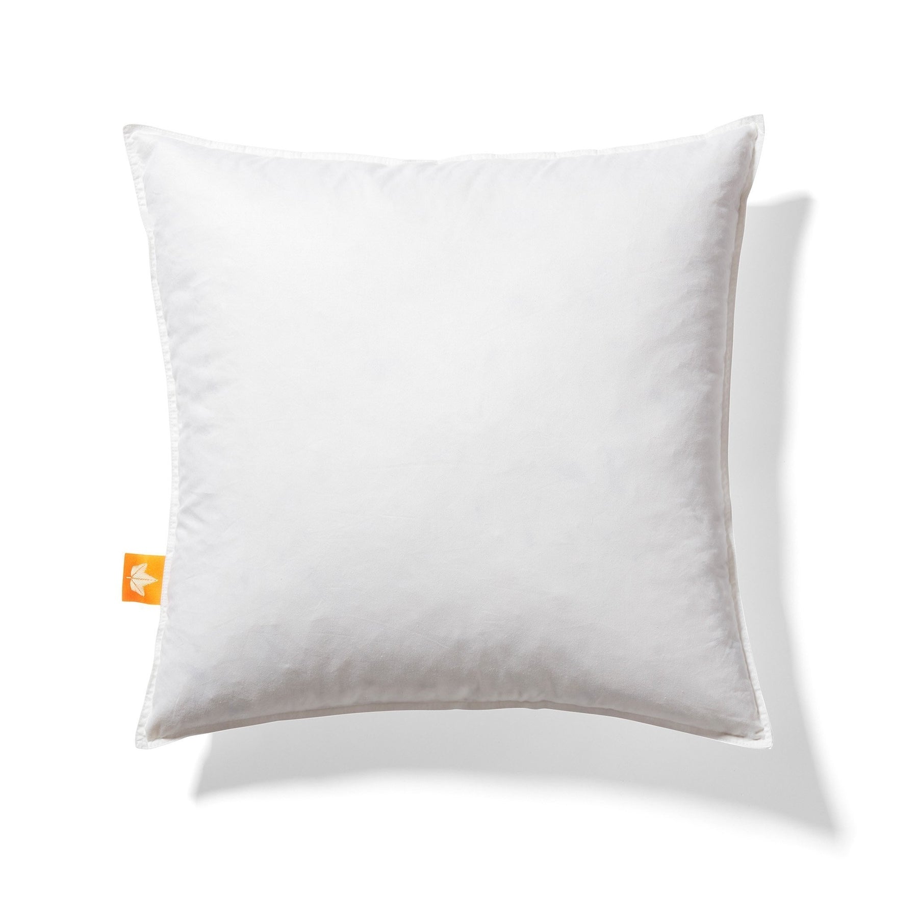 This cushion is filled with care in Canada. The outer shell is crisp 255 thread count cotton. The cushion is filled with goose feather, which provides great support and heft due to the feather quills.