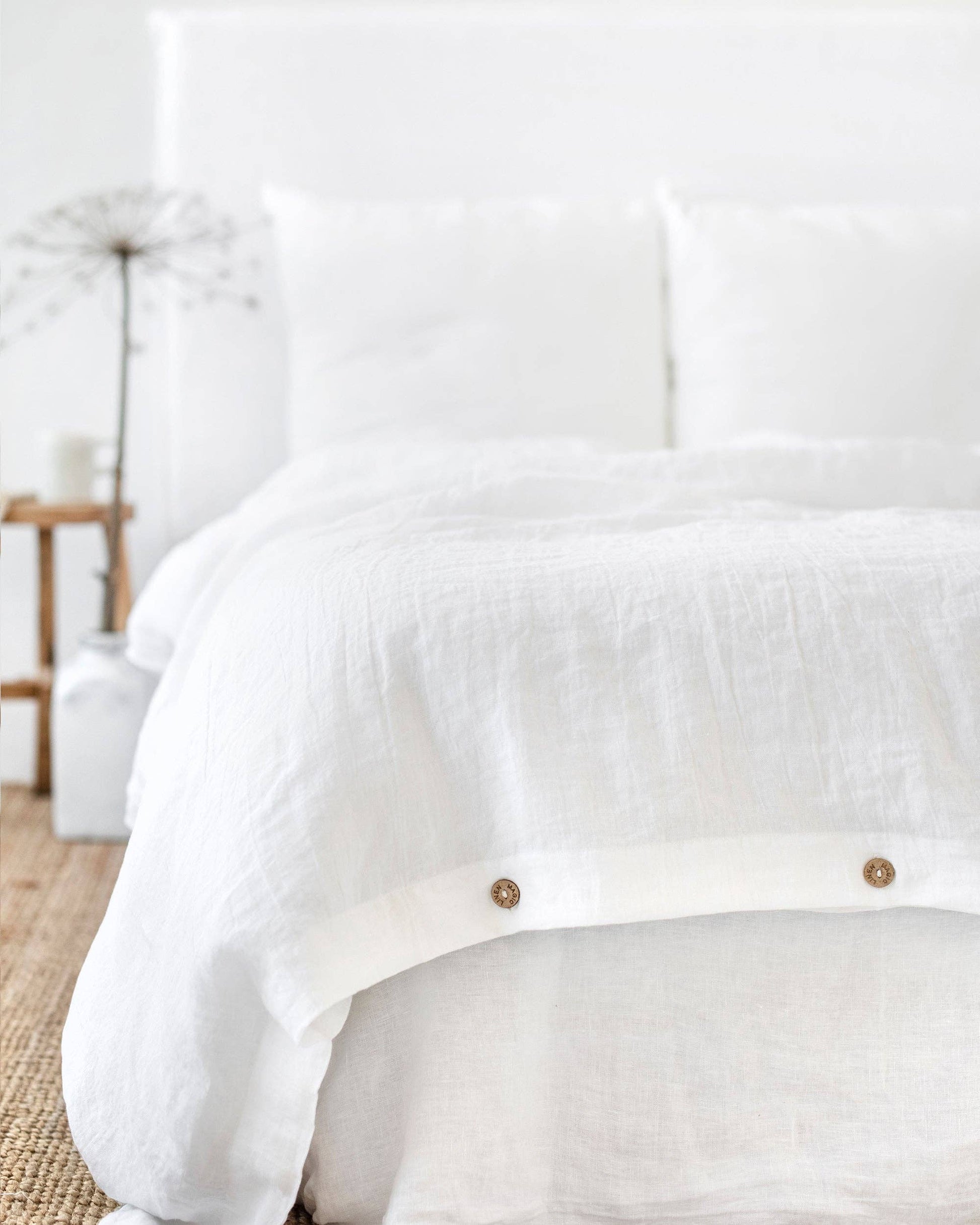 Linen fitted sheet in white colour. Gentle and breathable linen sheets will become a staple of every modern bedroom. The natural thermoregulating and moisture-wicking properties of linen guarantee the feeling of comfort all year round. Fitted sheets have been pre-washed for maximum softness and durability. Includes one fitted sheet Continuous elastic hem on all sides Made from 100% European flax Stone washed for maximum softness OEKO-TEX certified (2019OK0776) Machine washable.
